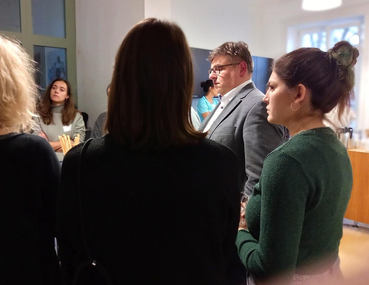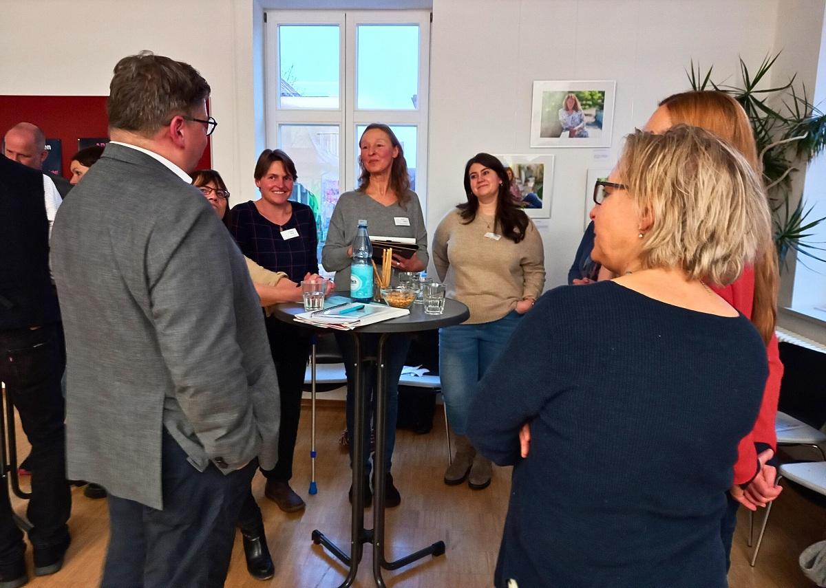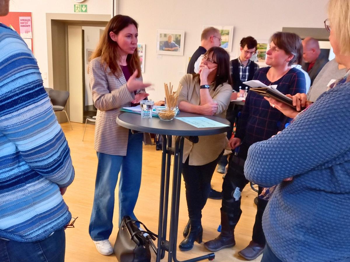 Diana Arnold (CDU), Dorothea Kliche-Behnke (SPD), Daniel Lede Abal (B90/ Die Grünen), Tom Besenfelder in Vertretung von Katharina Poppei (Die Linke) und Irene Schuster (FDP) sagten ihre Teilnahme sofort zu. Auch der Zulauf auf Seiten des Sozialwesens war groß: Über 30 Personen fanden sich bei der kit-Jugendhilfe ein, um ins Gespräch mit den Kandidierenden zu gehen. Da Interesse am fachlichen Austausch aus den unterschiedlichsten sozialen Sparten angemeldet worden war, kündigte Fabienne Christen, Regionalleitung Neckar-Alb des Paritätischen Wohlfahrtsverbands, ein Format in der Manier eines „politischen Speed-Datings“ an – viele Kontaktmöglichkeiten und eine Vielzahl an inhaltlichen Informationen und Fragen, mit der Möglichkeit, im Anschluss an die Veranstaltung vertieft in den Kontakt zu gehen. Nach einem kurzen Einstieg zur Bedeutung des Sozialwesens als Ganzes wurde an fünf Thementischen mit Vertreter*innen von jeweils zwei sozialen Einrichtungen 10 Minuten lang mit einem Kandidierenden diskutiert, informiert und nachgefragt. Anschließend wechselten die Kandidierenden an den nächsten Tisch, bis nach 60 Minuten alle fünf Gesprächsrunden absolviert waren. Dorothea Kliche-Behnke fasste entsprechend zusammen, dass sie soeben durch ein buntes Sammelsurium an sozialen Fachbereichen geeilt sei, das sie sich mühsam in 18 Jahren kommunal- und landespolitischer Tätigkeit erschlossen hatte. Gerade für die Neulinge unter den Kandidierenden war das Format demgemäß herausfordernd. Dennoch meisterten alle fünf Politiker*innen die Veranstaltung vorbildlich: Es wurde an den Tischen mit Interesse nachgehakt, politisch Stellung bezogen und manches in Kontrast zu den politischen Realitäten gesetzt, obwohl definitiv Verständnis für die sachliche Notwendigkeit von politischen Anpassungen vorhanden sei. Abschließend erhielten die Kandidierenden die Gelegenheit im Plenum ihr jeweiliges Fazit und den Bezug zum Wahlprogramm zu formulieren. Hier legte Diana Arnold (CDU) einen Schwerpunkt auf die kostenlose frühkindliche Bildung, Entbürokratisierung und Hilfe durch verbesserte Digitalisierung. Irene Schuster (FDP) erwähnte unter anderem, dass durch mehr Vertrauen mehr Handlungsspielräume für soziale Einrichtungen entstehen sollten und von sozialen Härten Betroffene möglichst viel Wahlfreiheit haben sollten. Dorothea Kliche-Behnke (SPD) betonte, dass die ungleichen Lebensverhältnisse gesellschaftlich schwierig seien; zudem brauche es mehr vom Land initiierte und kontrollierte Standards im Sozialwesen. Auch die Bedeutung von Prävention und einer bedarfsdeckenden Versorgung bei psychischen Krisen müsse politisch ernstgenommen werden. Daniel Lede Abal (B90/die Grünen) wiederum machte sich stark dafür, von der Projektfinanzierung hin zu einer verlässlichen und nachhaltigen finanziellen Ausstattung zu gelangen. Außerdem sprach er offen aus, dass mehr Geld, auch für die Kommunen, notwendig sei für ein funktionierendes Sozialwesen. Hier dockte auch Tom Besenfelder (die Linke) an, der die belasteten Kommunalfinanzen ebenfalls als drängende politische Aufgabe benannte. Zudem seien generell faire Löhne die beste Prävention von sozialen Härten. Parteiübergreifend wurde betont, dass es politische Lösungen für die oft prekären Wohnsituationen brauche. Und auch, dass von den sozialen Einrichtungen erbrachte sogenannte Freiwilligkeitsleistungen mitnichten nur freiwillige – und somit verzichtbare – Angebote sind, wurde wiederholt von den Politiker*innen benannt. Vielmehr sind diese Ausdruck des grundlegenden Rechts auf soziale Teilhabe der Menschen und müssen dementsprechend auch weiterhin gestützt werden.