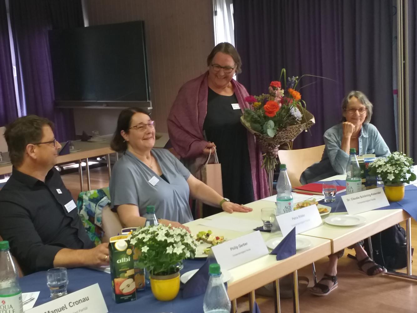 Bei der Verabschiedung von Petra Röder, die zum 31.08.2025 aus dem Kreisvorstand ausscheidet, bedankt sich Dr. Claudia Schöning-Kalender, Vorständin im Kreisverband, für Ihr herausragendes Engagement, das vor allem während Ihrer Amtsperiode als Ligavorsitzende deutlich wurde. „Wir verlieren eine wichtige Mitstreiterin und Expertin im Bereich der Behindertenhilfe und darüber hinaus“, so Dr. Schöning-Kalender.